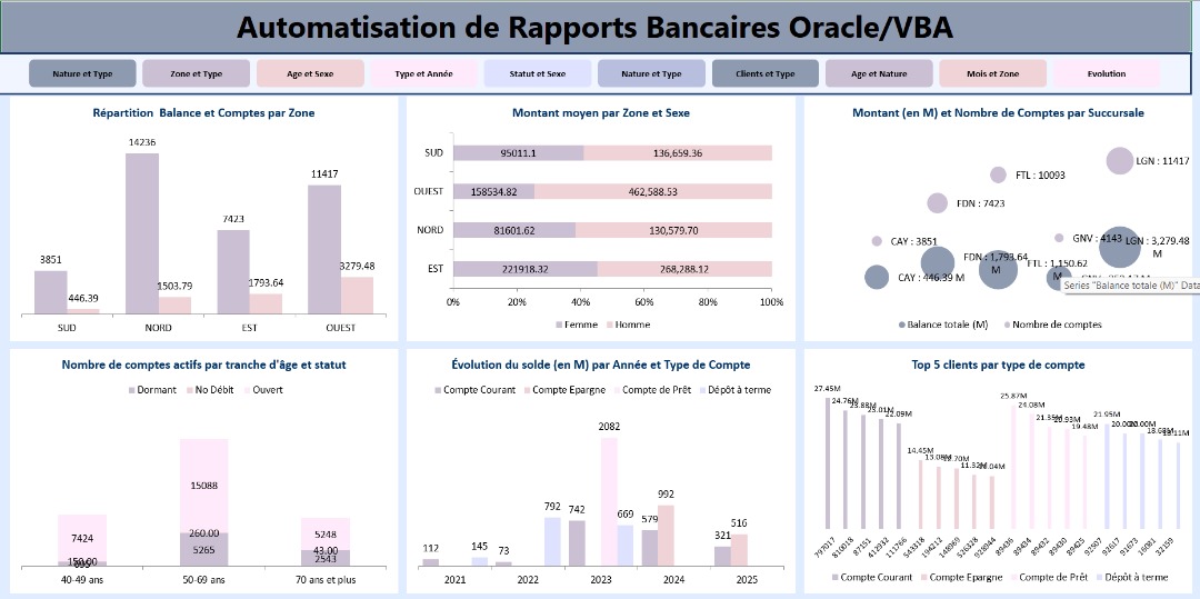 Le projet consiste Mettre en place une solution automatisée de reporting permettant de générer, mettre en forme et présenter dynamiquement des rapports et tableaux de bord issus d’une base de données Oracle, puis transférer le rapport final par email. L’objectif principal est de démontrer une maîtrise avancée du langage VBA, ainsi qu’une capacité à automatiser un processus de reporting de bout en bout.
