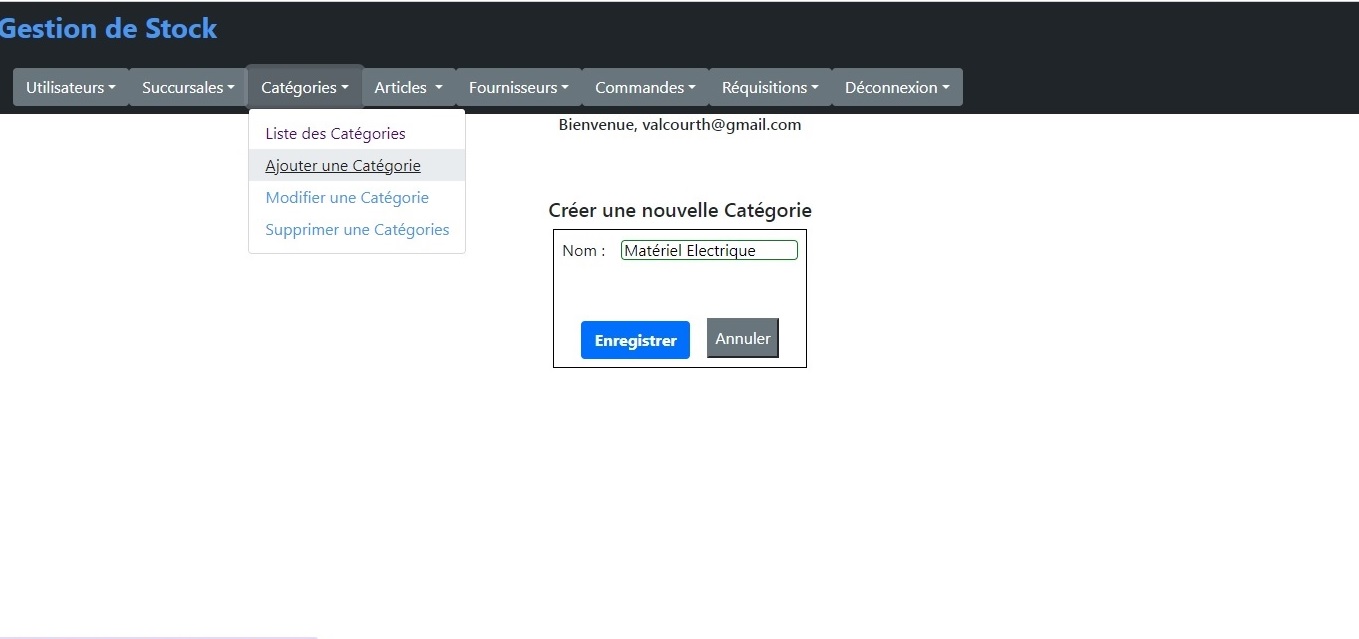 L'écran suivant permet à l'administrateur d'ajouter une nouvelle catégorie.