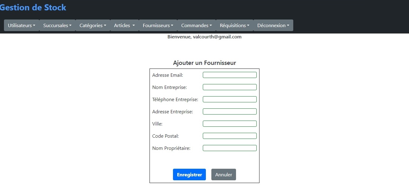 L'écran suivant permet à l'administrateur d'ajouter un fournisseur.