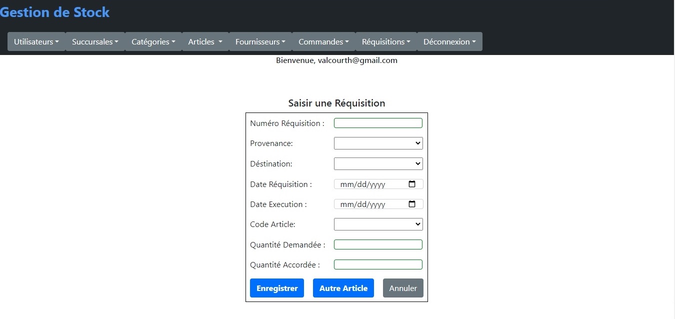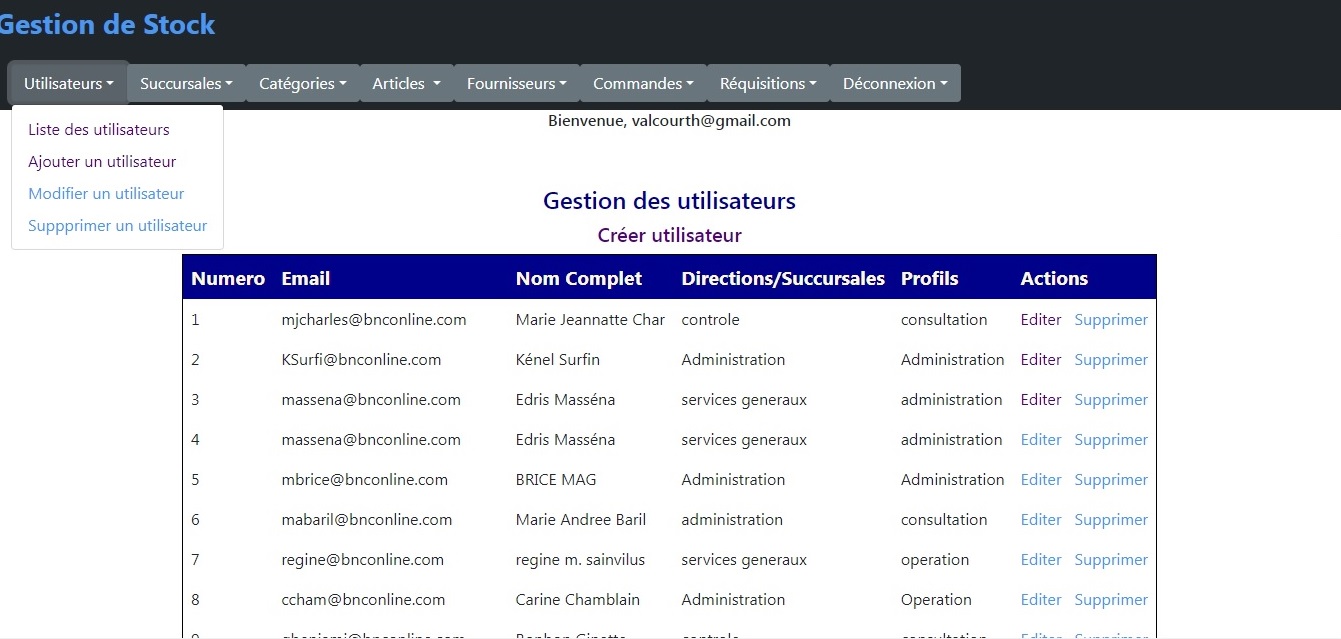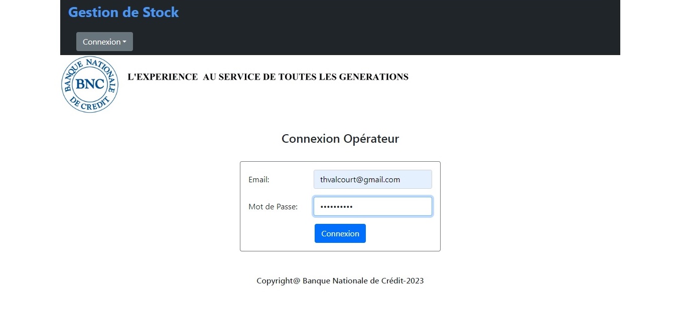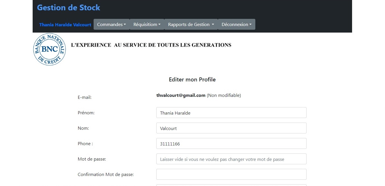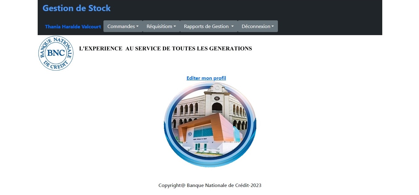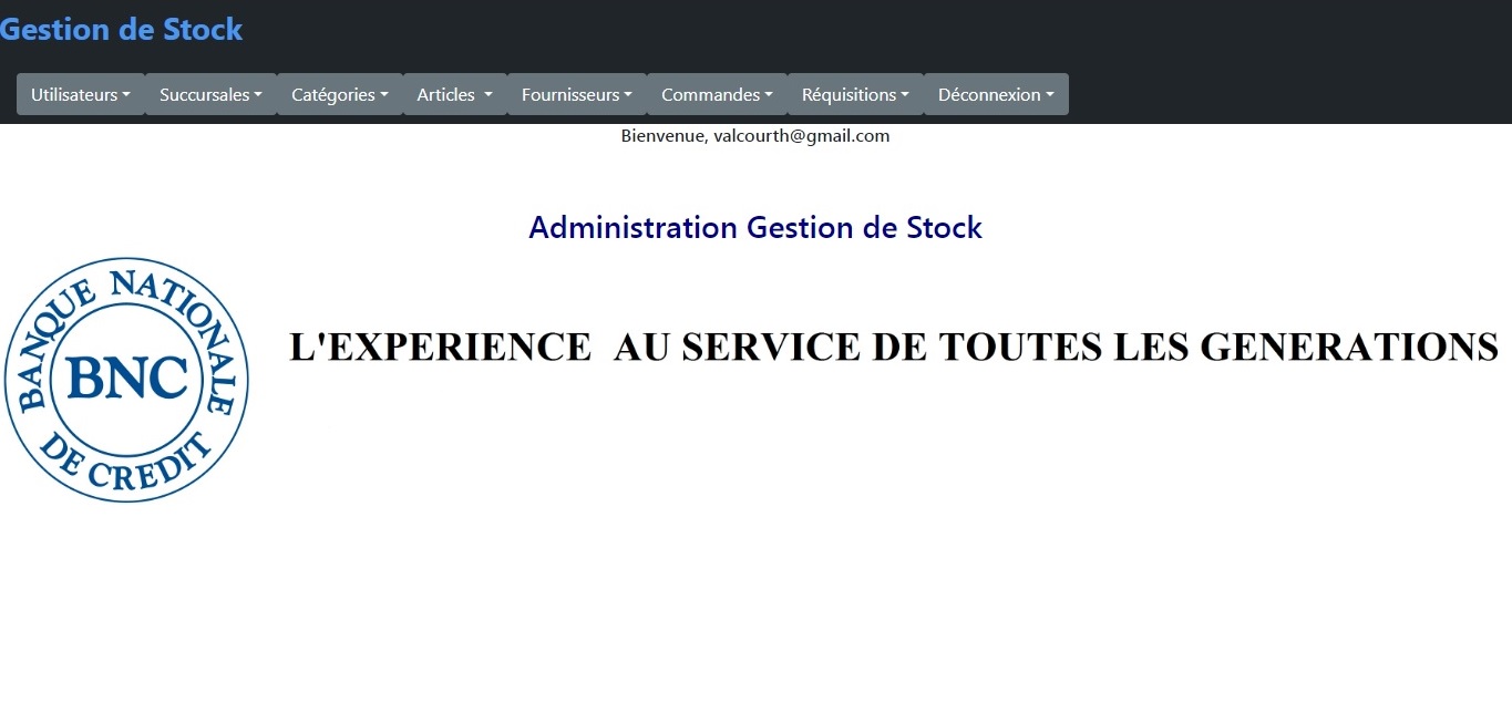 Cette Application Web dynamique a éte développée en 2020 pour remplacer l'ancienne application de Gestion de Stock de la BNC. Cette version permet aux Succursales et Directions de transmettre directement leurs demandes de réquisition. Elle facilite aussi le deploiement et la maintenance. Les technologies utilisées sont les suivantes: J2EE, JSP, Hibernate/JPA, Eclipse, Servlet, JavaScript, Bootstrap, CSS, HTML et MySQL