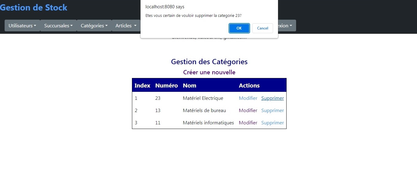 L'écran suivant confirme la suppression d'une catégorie.