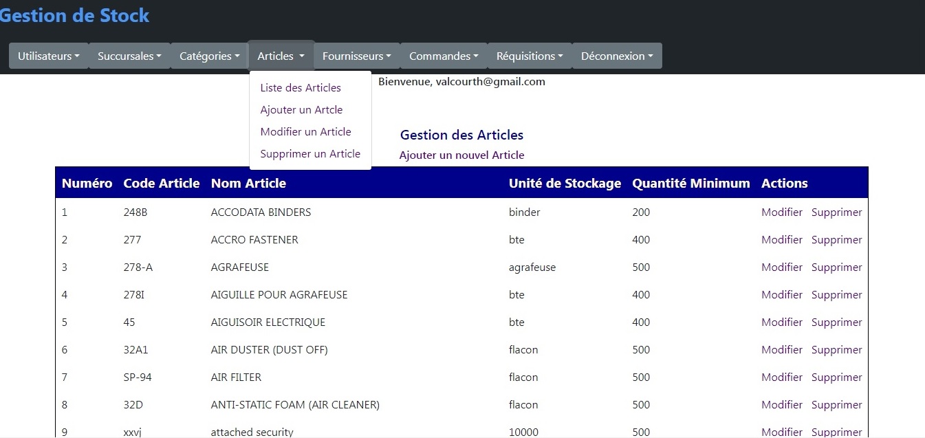 GESTION DU STOCK