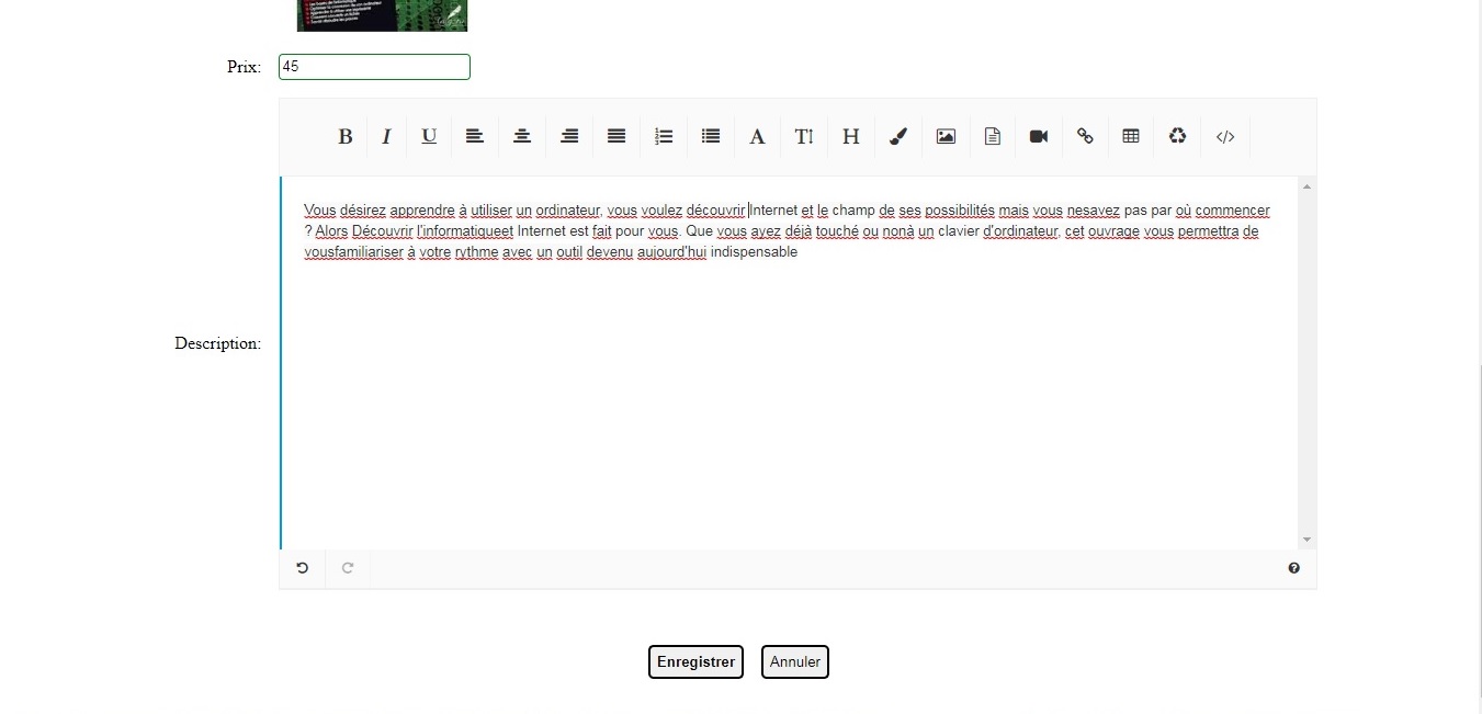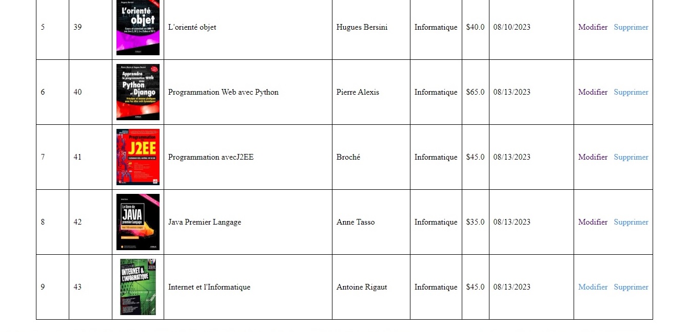 Les textes "Modifier" et "Supprimer" permettent à l'administrateur de modifier ou de supprimer un livre de la Base de données.