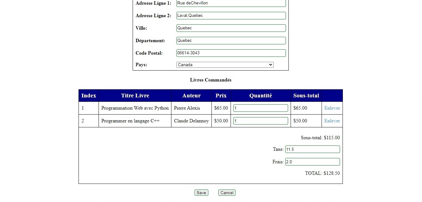 Les écrans suivants permettent à l'administrateur d'éditer les commandes placées par les clients.