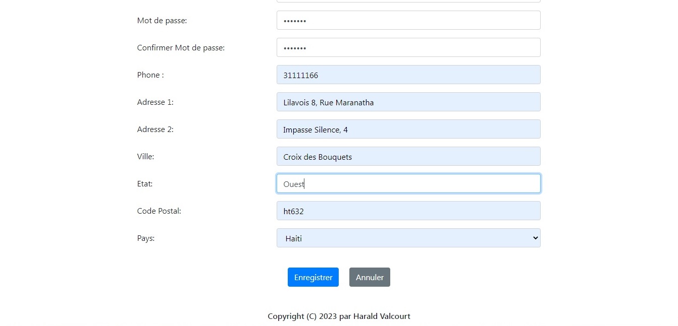 L'écran suivant présente la fenêtre de bienvenue au client, il peut alors modifier les informations de son profil sauf son email