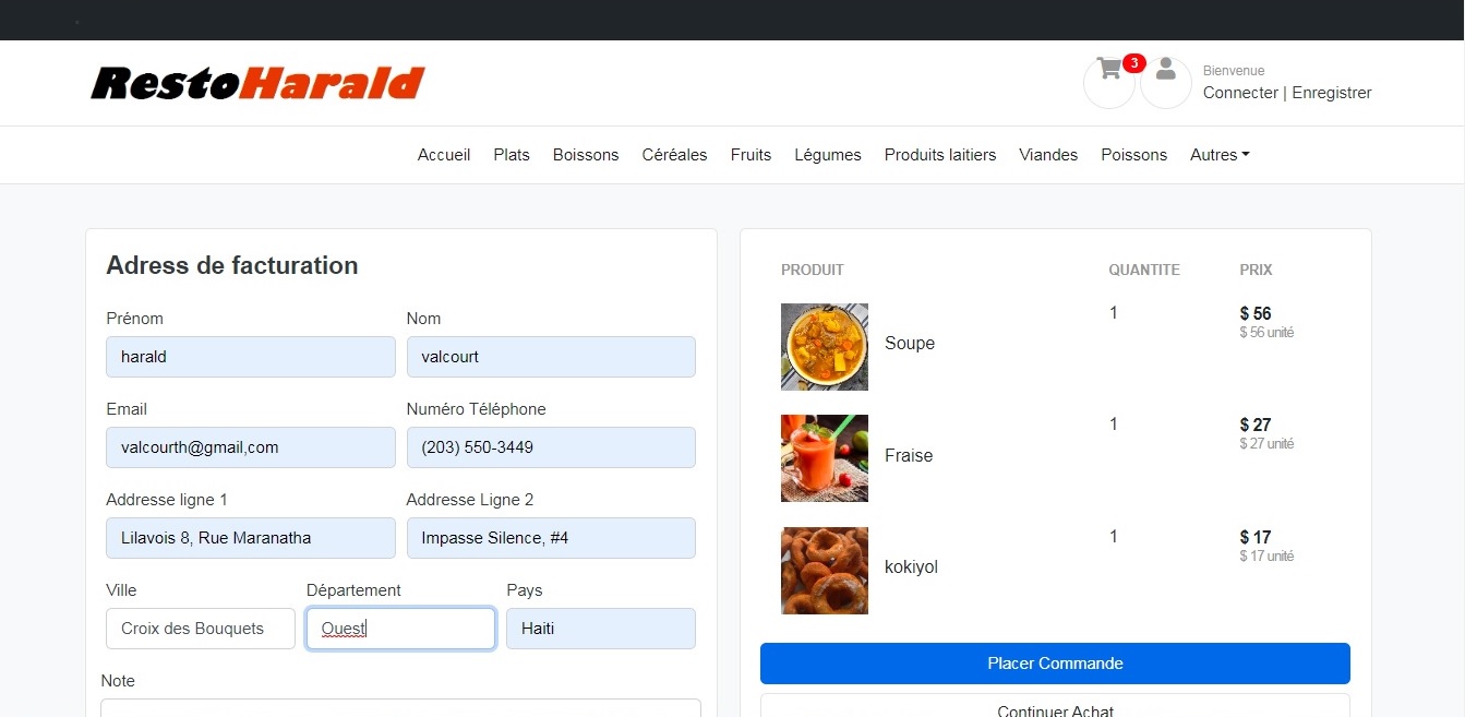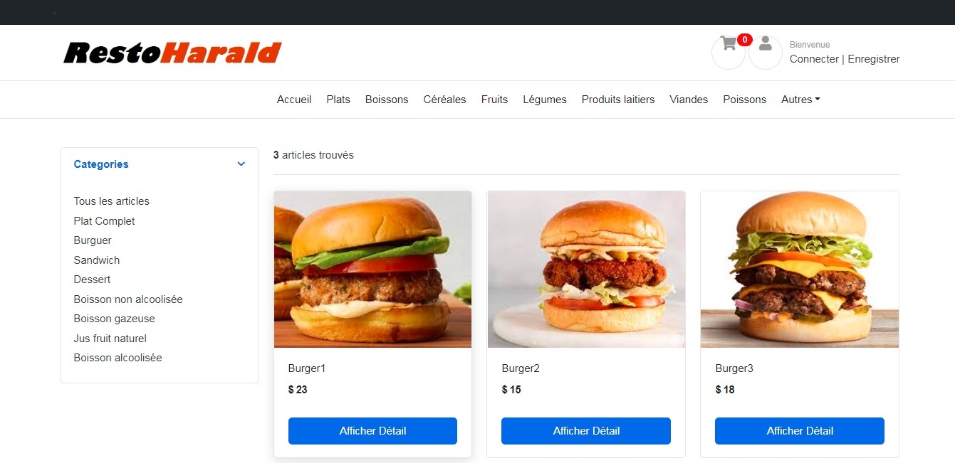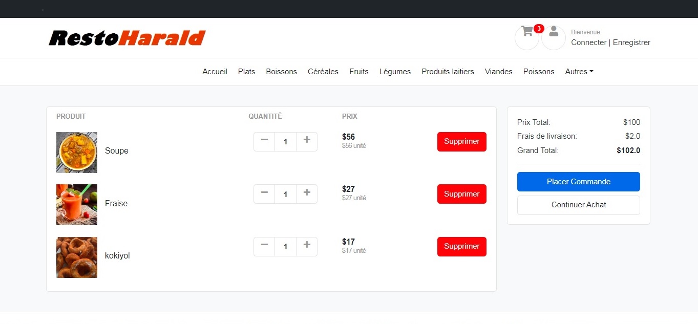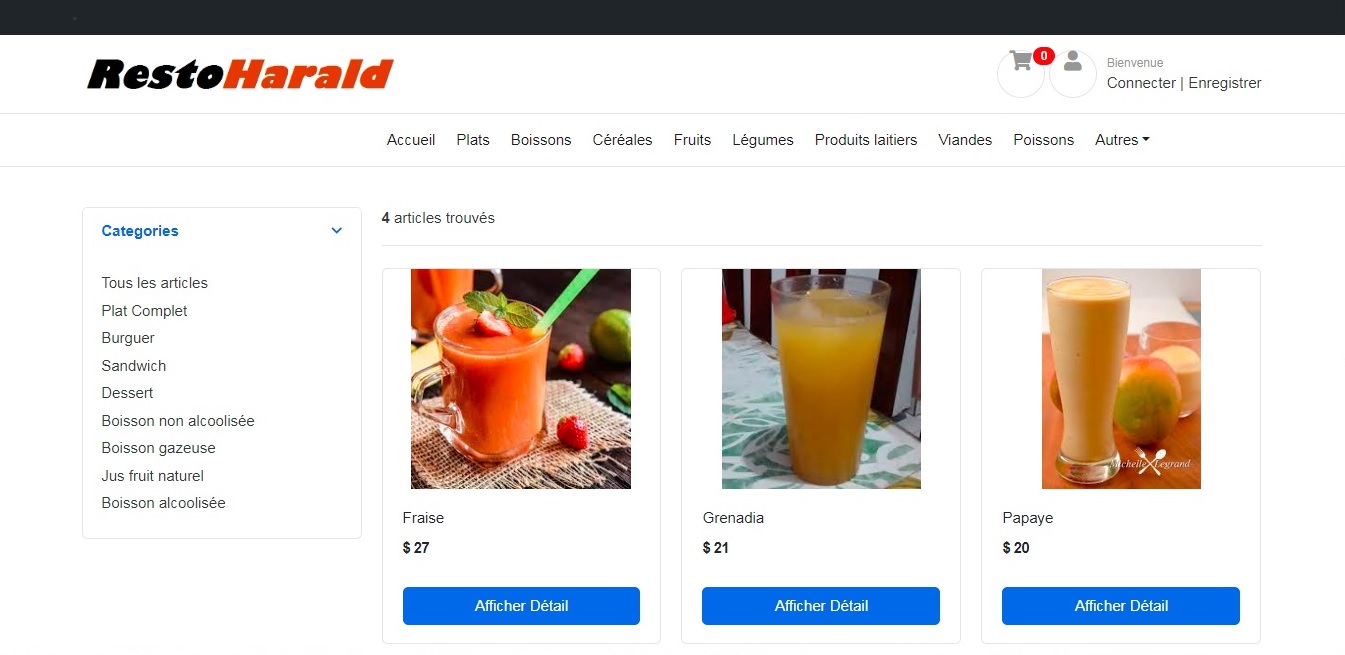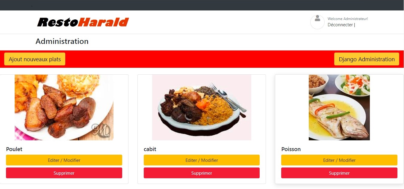 Cette application web permet à un client d'accéder aux informations relatives aux différents plats, desserts, jus de fruit, boissons et autres disponibles. Il peut les afficher en fonction de leur catégorie puis les ajouter dans son chariot et enfin placer la commande. La commande sera alors livrée à l'adresse indiquée. Cette application offre aussi une interface d'administration permettant à un employé de s'authentifier pour pouvoir effectuer l'ajout, la modification et la suppression des articles sans passer par l'interface Django Administration.