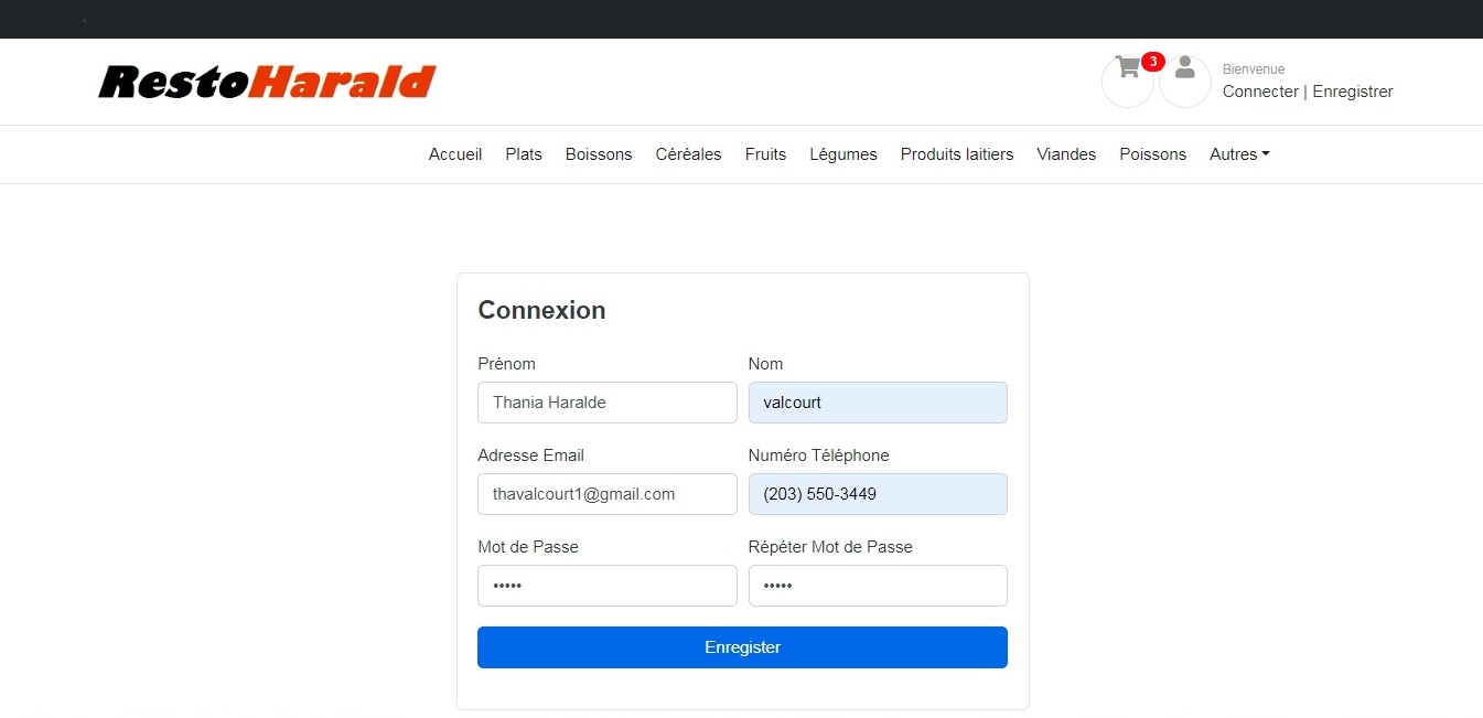 Écran d'inscription du client pour devenir membre.