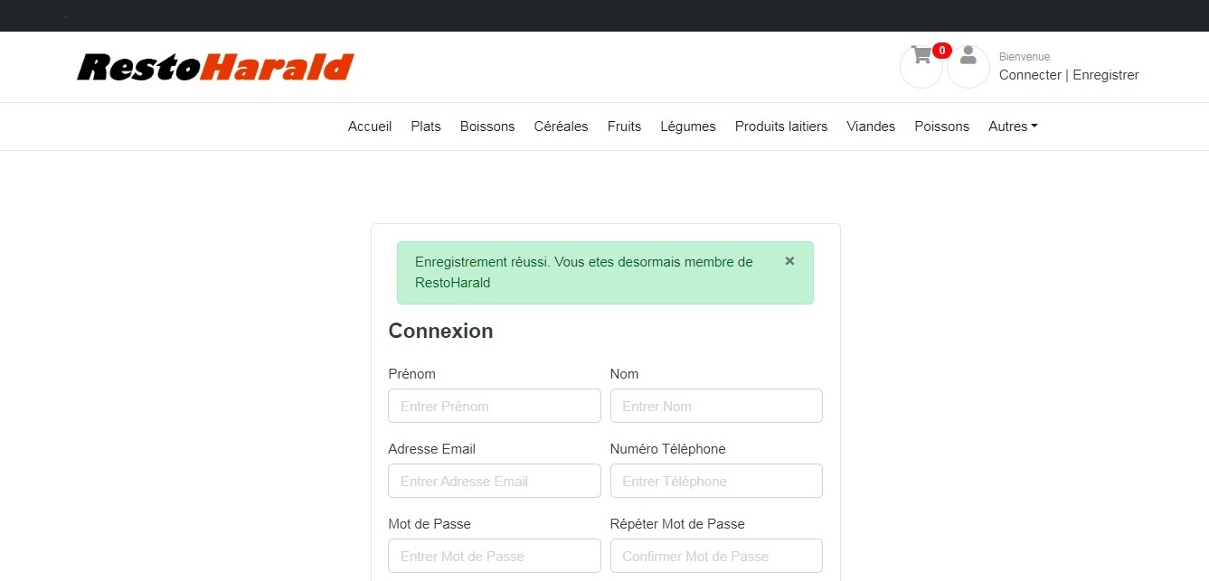 L'écran de confirmation de l'inscripion.