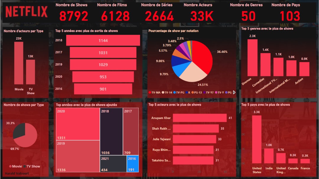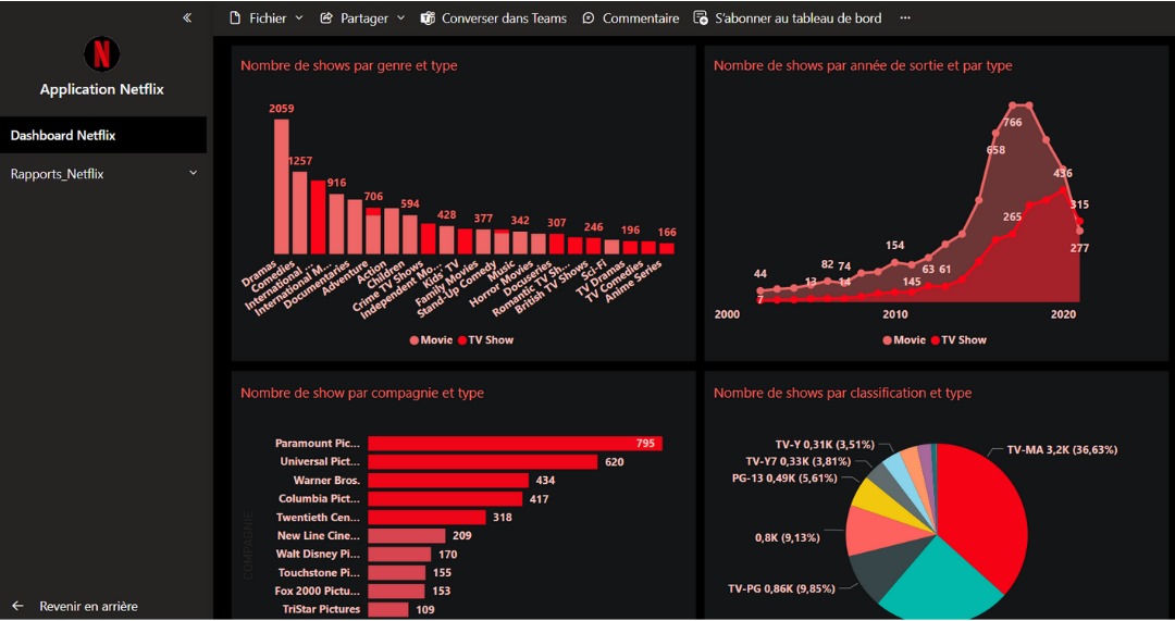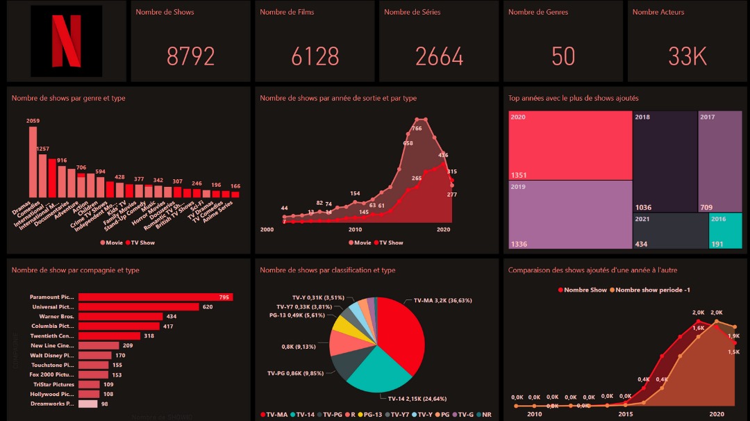 Le projet consiste à analyser et visualiser un jeu de données de NETFLIX, cette entreprise spécialisée dans la distribution et l'exploitation d'œuvres cinématographiques pour traiter les différents aspects d'un projet d'analyse de données. Dans le cadre de ce projet, on va explorer la façon dont les langages SQL, PLSQL et PYTHON s'intègrent à chaque étape du cycle de vie de l'analyse des données. Dans un premier temps, on va voir comment collecter, nettoyer et analyser des données avec les langages PLSQL et SQL d'Oracle. Dans un deuxième temps, on reprendra les mêmes étapes avec la librairie PANDAS du langage Python. De plus, les librairies Matplotlib et Seaborn seront utilisés pour visualiser les données. En fin, des rapports, un tableau de bord et une application seront réalisés avec Power BI Desktop et Power BI Service de Microsoft