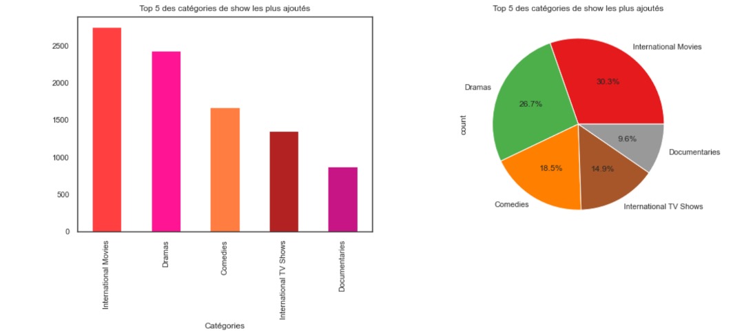 L'écran suivant affiche l'histogramme et le pie chart du top 5 des catégories ajoutées.