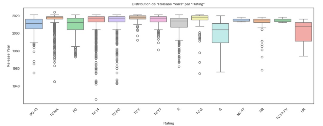 L'écran suivant affiche la distribution de la variable Rating par release_year..