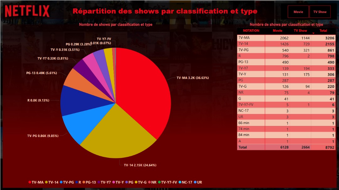 L'écran suivant affiche la répartition des shows par classification et type