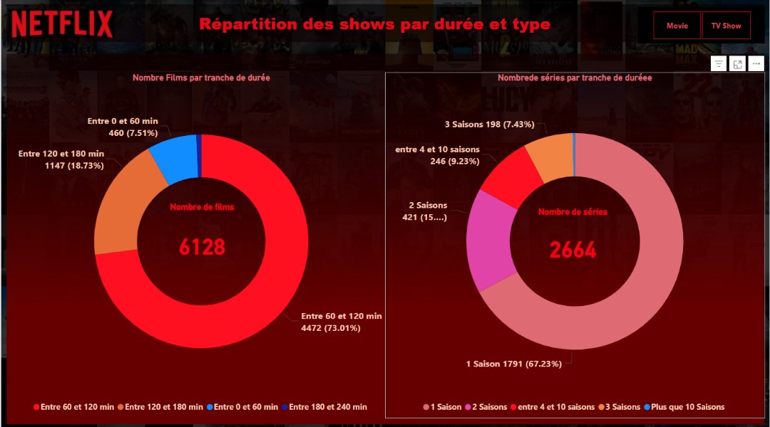 L'écran suivant affiche la répartition des show par durée et type.