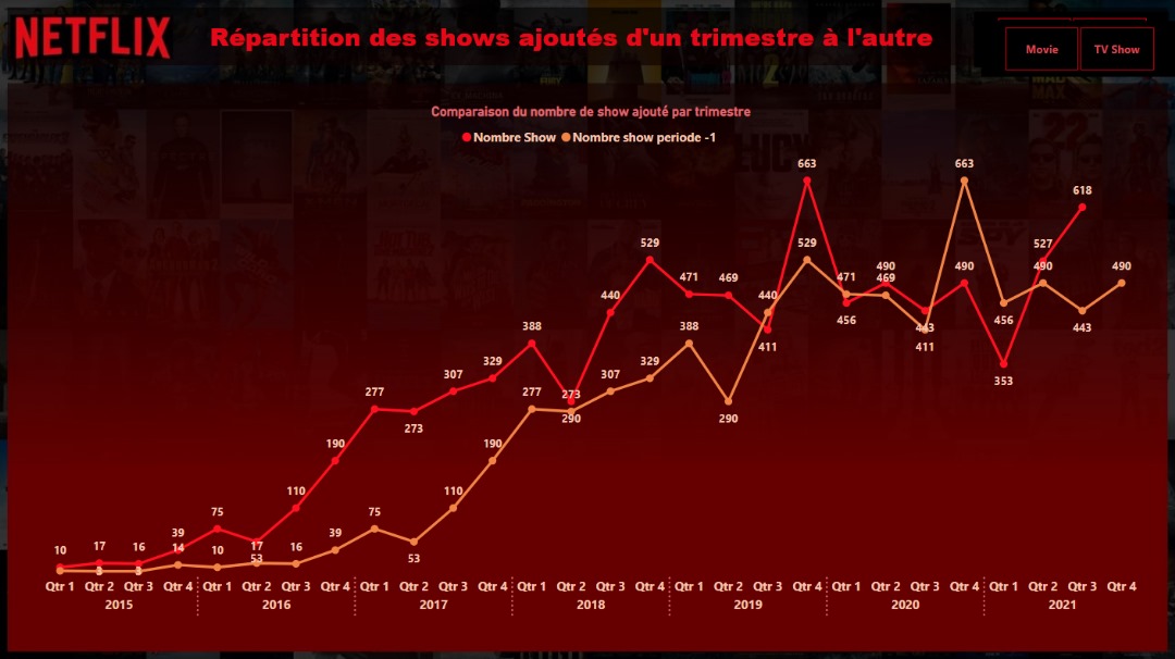 L'écran suivant affiche la répartition de l'ajout des shows par trimestre.