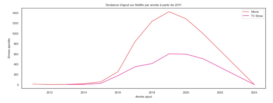 L'écran suivant affiche la tendance des ajouts sur Netflix à partir de 2011.