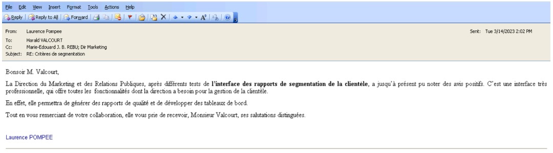 L'écran suivant affiche l'interface de segmentation de la clientèle et de génération des rapports automatisés réalisée avec Viaual Basic 6.0